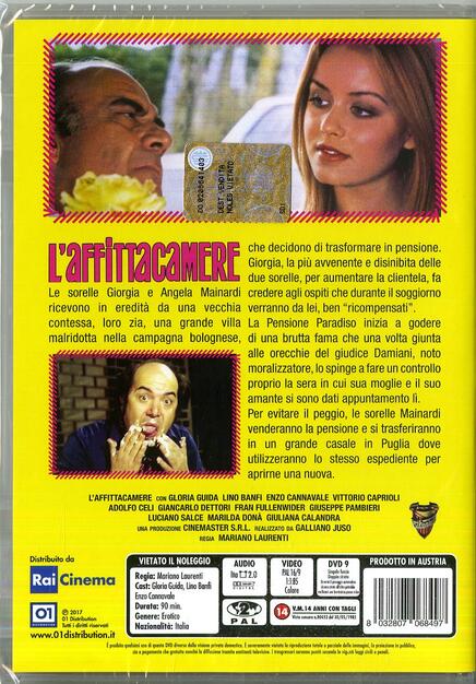 A partire da giovedì 6 luglio 2017 è disponibile on line e in tutti i negozi il dvd l'affittacamere di mariano laurenti con vittorio caprioli, gloria guida, giancarlo dettori, luciano salce.